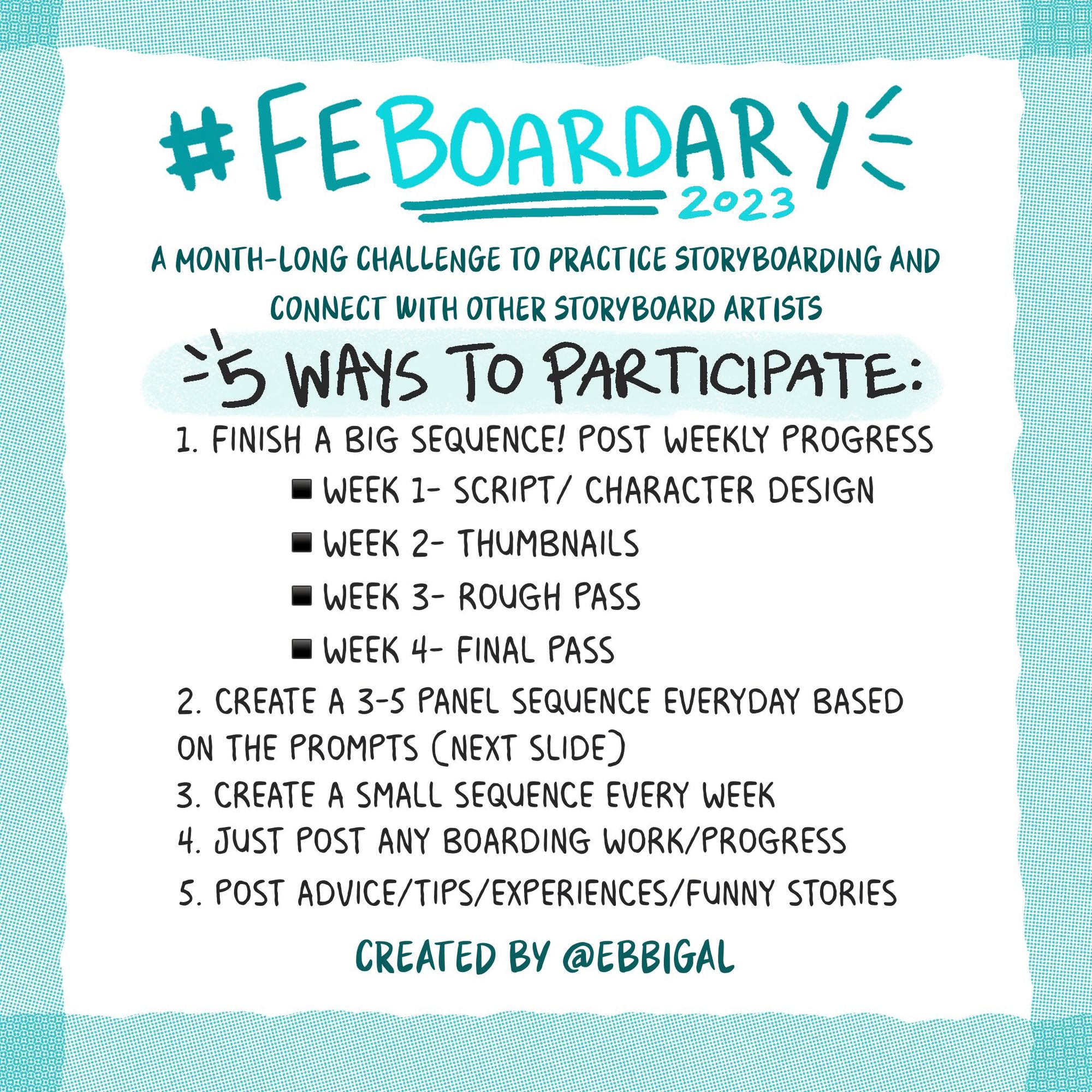 I am excited to announce we are partnering with @ebbigail to support the #Feboardary storyboard challenge.